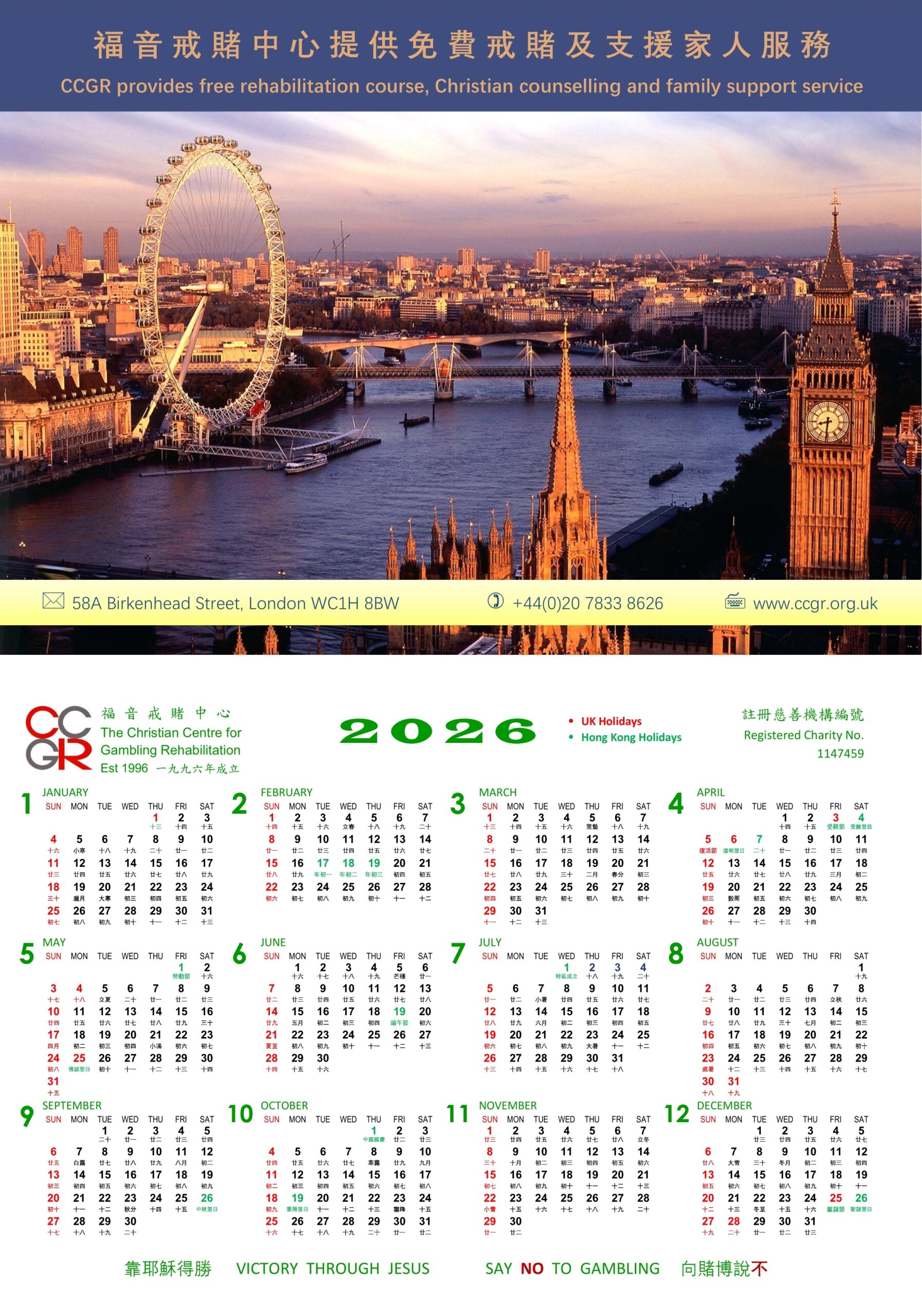 福音戒賭中心年曆: