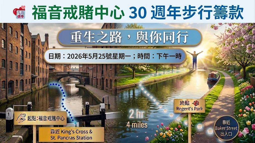 4. 步行路段 : 由福音戒賭中心出發,經過Coal Drops Yard, Camden Lock Market, Regent’s Park Canal 到達終點站Regent’s Park 近Baker Street 出口解散,全程約4英哩,步行所需時間約2小時。(見附頁)